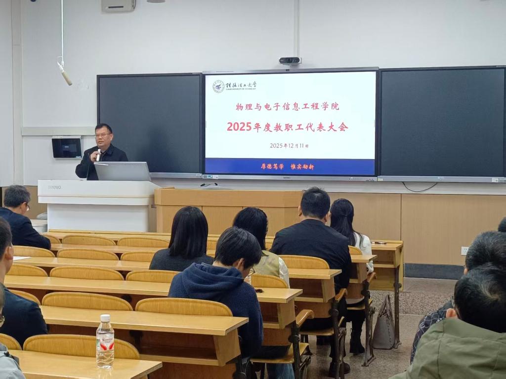 2025年12月11日,物理与电子信息工程学院在屏风校区9108教室召开教职工代表大会,会议由学院党委书记秦勤忠主持,全体教职工代表参加。 会上,张富文副院长对《物理与电子信息工程学院绩效分配方案(2025年修订稿)》拟修订的内容向所有参会教职工代表进行详细说明。 在讨论发言环节,与会代表围绕工作报告和学院发展中的热点问题进行了热烈讨论。大家畅所欲言,在学科建设、科研创新、本科教学等多个方面提出了许多宝贵的意见和建议。 经过充分讨论和审议,大会进入表决程序。与会代表以举手表决的形式,全票通过了《物理与电子信息工程学院2025年度绩效分配方案(修订稿)》。 学院党委书记秦勤忠在总结讲话中指出,本次绩效方案修订过程充分征求了全体教职工意见,对收集到的意见和建议,学院召开科级干部列席的党政联席会议审议,并提请教代会代表审定通过。体现了学院民主管理优良传统,是群策群力、共谋发展的生动实践。新方案立足新发展阶段,紧扣博士点建设核心任务,必将有效激发全院教师创新活力。 秦勤忠书记对学院下一步工作提出三点要求:一是各位代表要做好修订方案的解读与答疑工作,确保广大教师进一步准确理解方案内容;二是要大力营造公开、公平和公正的干事创业氛围,激发全体教职工干事创业的内生动力;三是要强化制度执行,确保绩效改革落地见效,真正发挥“指挥棒”作用,为学院高质量发展注入新动能。 绩效方案的修订对于构建科学评价体系、激励教师追求卓越、加快推进博士点建设具有重要的激励作用。 学院党委书记秦勤忠主持会议 张富文副院长汇报绩效分配方案 全体教职工代表举手表决 (一审:顾晨,二审:朱鹏飞,三审:秦勤忠)