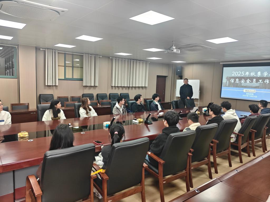 为进一步强化校园安全管理,提升学生安全委员的责任意识与应急处置能力,10月29日下午,物理与电子信息工程学院于07424会议室召开2025年秋季学期安全委员培训会。会议由学院辅导员朱鹏飞老师主持,各班级安全委员及信安中心成员共50余人参加。