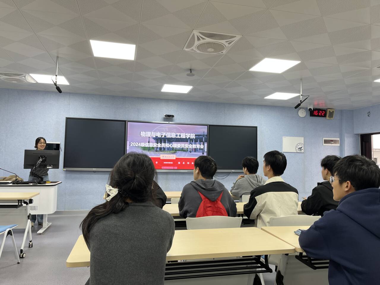 为全面加强学生心理健康与安全管理工作,构建“心理+安全”双防线,11月21日下午,物理与电子信息工程学院于06304会议室召开心理委员与安全委员联合培训会。会议由学院辅导员黄雯老师主持,各班级心理委员、安全委员及朋辈互助站成员共60余人参加。