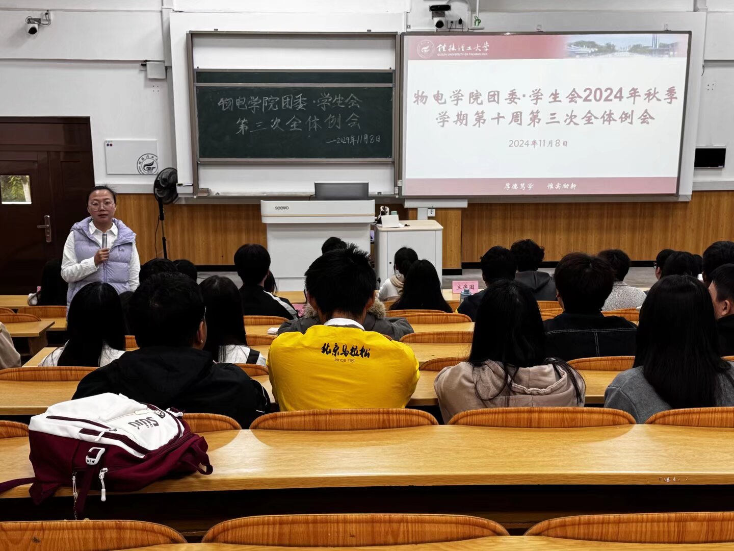 2024年11月8日中午,物理与电子信息工程学院团委·学生会于05102教室顺利召开第三次全体例会。会议由唐伟程同学主持,学院团委书记姚倩老师出席,全体成员参会。