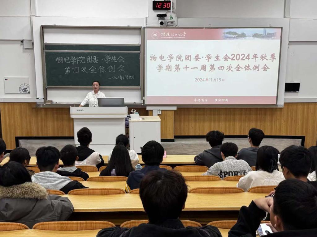 2024年11月15日中午,物理与电子信息工程学院在05102教室召开团委·学生会第十一周第四次全体例会。会议由唐伟程同学主持,学院团委书记姚倩老师出席,全体成员参会。