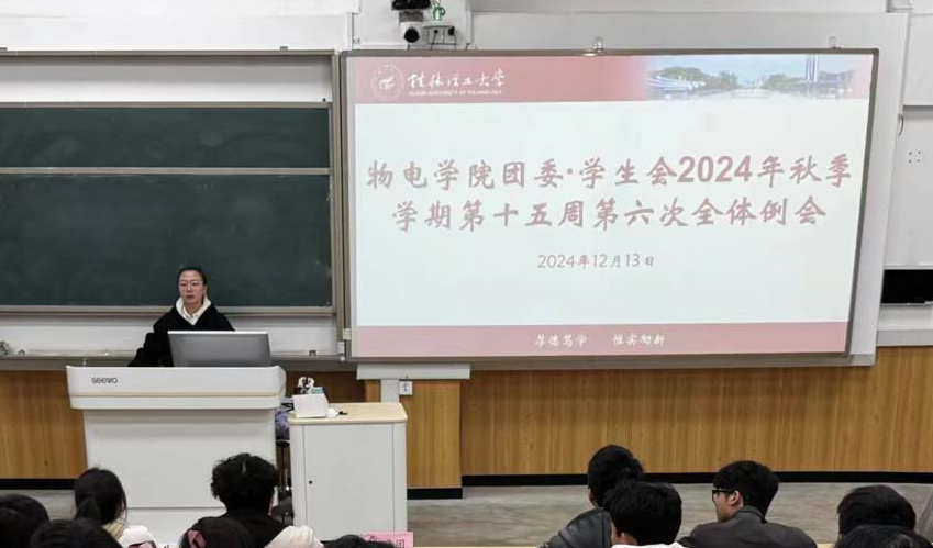 2024年12月13日中午,物理与电子信息工程学院团委·学生会在05102教室召开第十五周全体例会。会议由唐伟程同学主持,学院团委书记姚倩老师出席,全体成员参会。