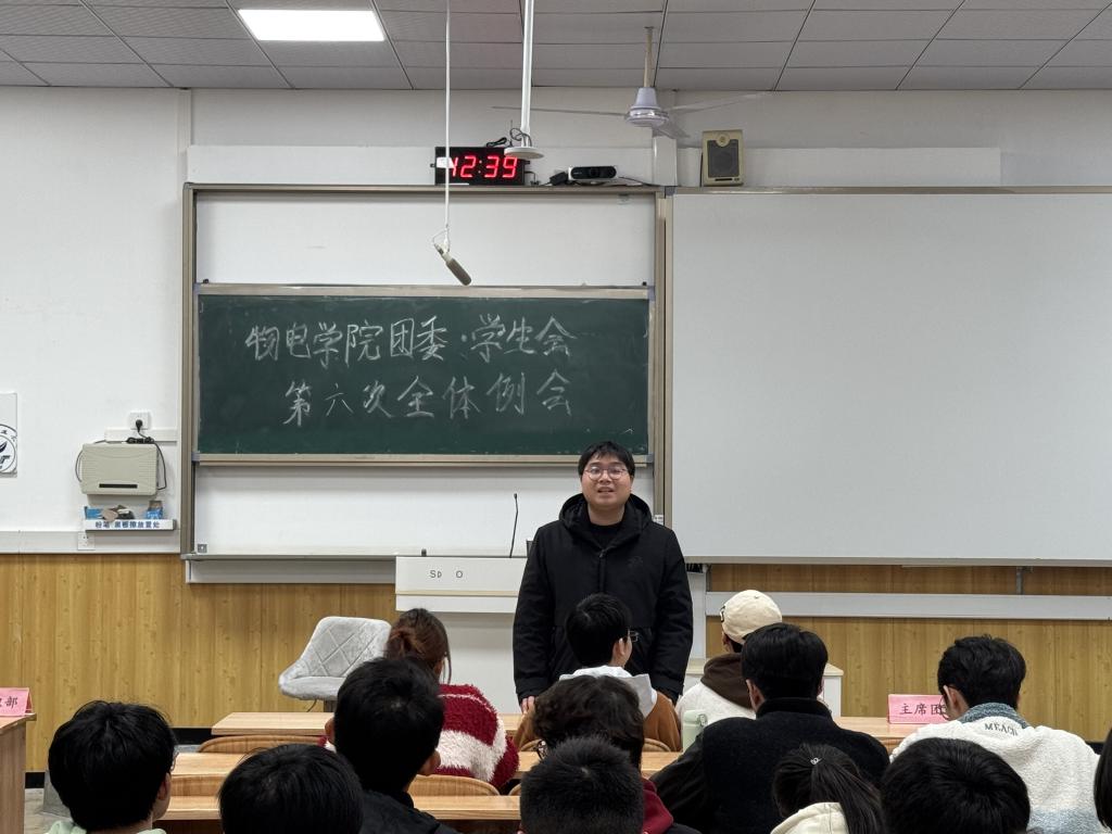 2025年5月29日中午,物理与电子信息工程学院团委·学生会在06502教室召开春季学期第十三周第六次全体例会。会议由唐伟程同学主持,学院团委副书记王发老师出席,全体成员参会。