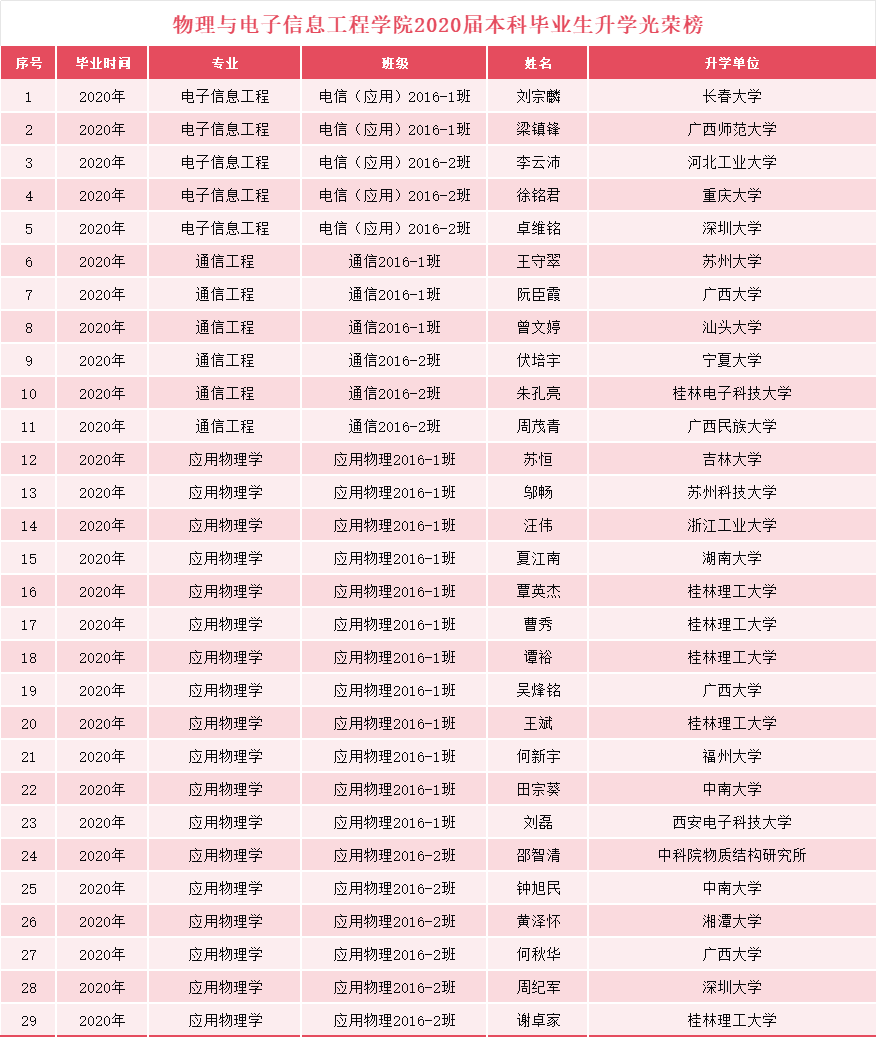 物理与电子信息工程学院2020届本科毕业生升学光荣榜