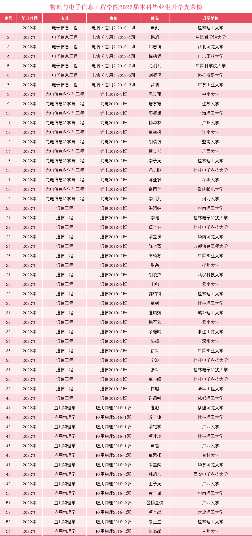 物理与电子信息工程学院2022届本科毕业生升学光荣榜